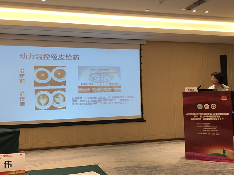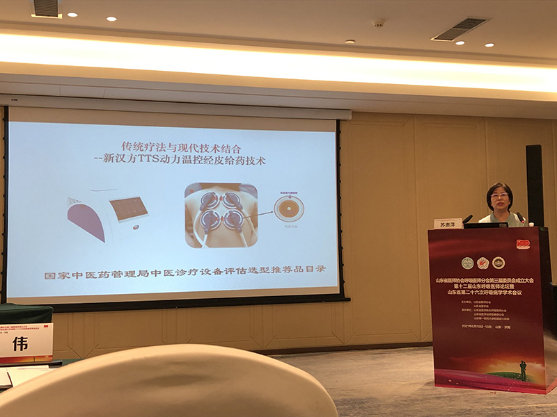 此次会议上,北京中医院大学东直门医院苏惠萍教授携TTS®科技中医外治防治慢阻肺代表性项目,做客慢性气道疾病分会场。苏惠萍教授在会上介绍了传统中医慢阻肺治疗——三伏贴及其冬病夏治理论渊源。她讲到,三伏贴依据于中医理论,对临床适应症广泛,但对其使用的人体素质较高,且只适用于“冬病”范畴的肺系疾病虚寒患者。针对三伏贴目前所存在的贴敷材料过敏、贴剂不牢固易脱落、药量的标准化、药物的透皮效果等诸多问题。她提到,呼吸慢病TTS综合治疗项目现已攻克临床存在的弊端难题,它将传统中医疗法于现代数字医学技术紧密结合。遵循传统中医药理论进行标准化药物治疗,同时运用现代数字医学技术,利用高温、正负压形成的压力井,提升药物分子的透皮速率,突破毛细血管网对药物吸收的“漏槽效应”,快速形成有效药物浓度,控制慢阻肺患者病情,降低急性发病率,可做到逆转肺功能。呼吸慢病TTS综合治疗项目(简称TTS项目)经过15年临床应用和探索具备完整的技术理论和独特的技术手段,已经成为医院开展呼吸慢病(慢阻肺、肺结节、肺部纤维化等呼吸系统疾病)康复治疗的首选技术。目前中国中医科学院广安门医院、北大人民医院、北京中医药大学附属东直门医院、火箭军总医院等知名三甲医院均已引进此项目,获得了医患的一致好评,同时也在医疗机构社会效益和经济效益上均获得满意的回报。