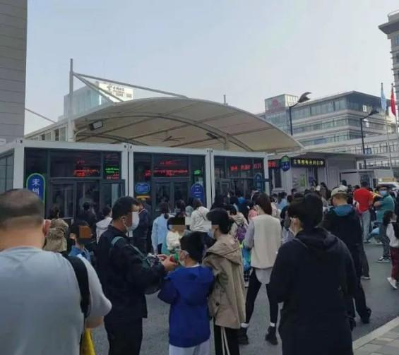 图:北京儿童医院末梢采血窗口外排起的长队。