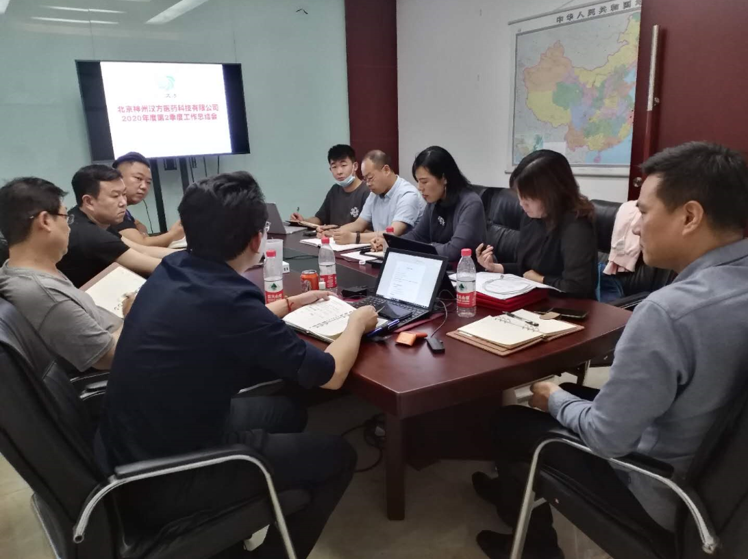 2020年5月24日下午,北京神州汉方医药科技有限公司召开了2020年度第2季度销售工作总结会。会议主题是“团结、努力、实干”,本次会议由公司总经理和销售部全体同事参加。